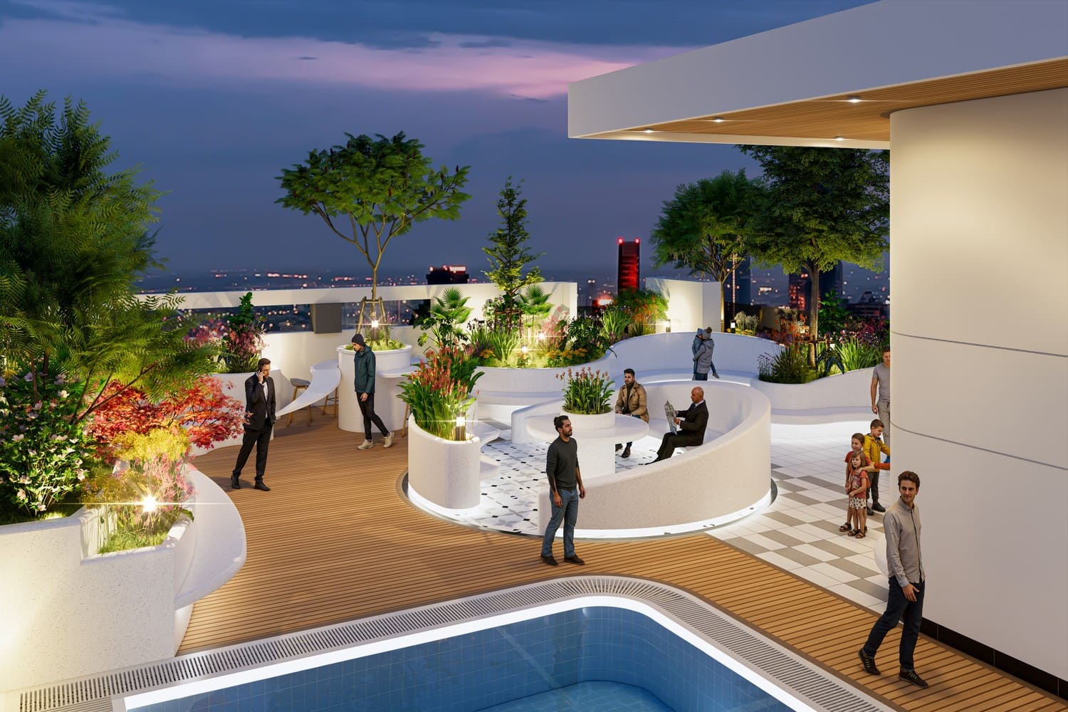 Enjoy a rooftop pool, gym, sky bar, and 24/7 security—perfect for comfort, wellness, and social living in the city.