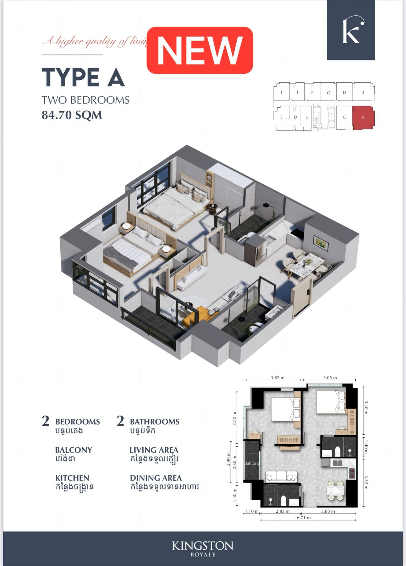 Kingston Royale Condominium offers modern city living with flexible layouts, premium amenities, and a prime location in Phnom Penh. Choose the lifestyle that fits you best