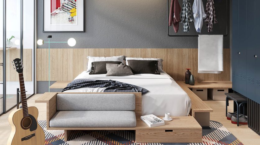 Odom‘s 1B homes face northeast but receive more shade from Odom Tower and have views of the Mekong to the east. Designed for city dwellers, young professionals and long-term expats who enjoy cooking and want to share the experience with their guests. The 1B is a comfy nest perfect for unwinding and recharging