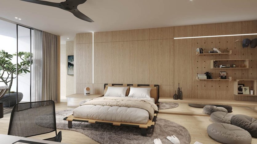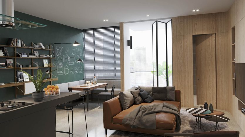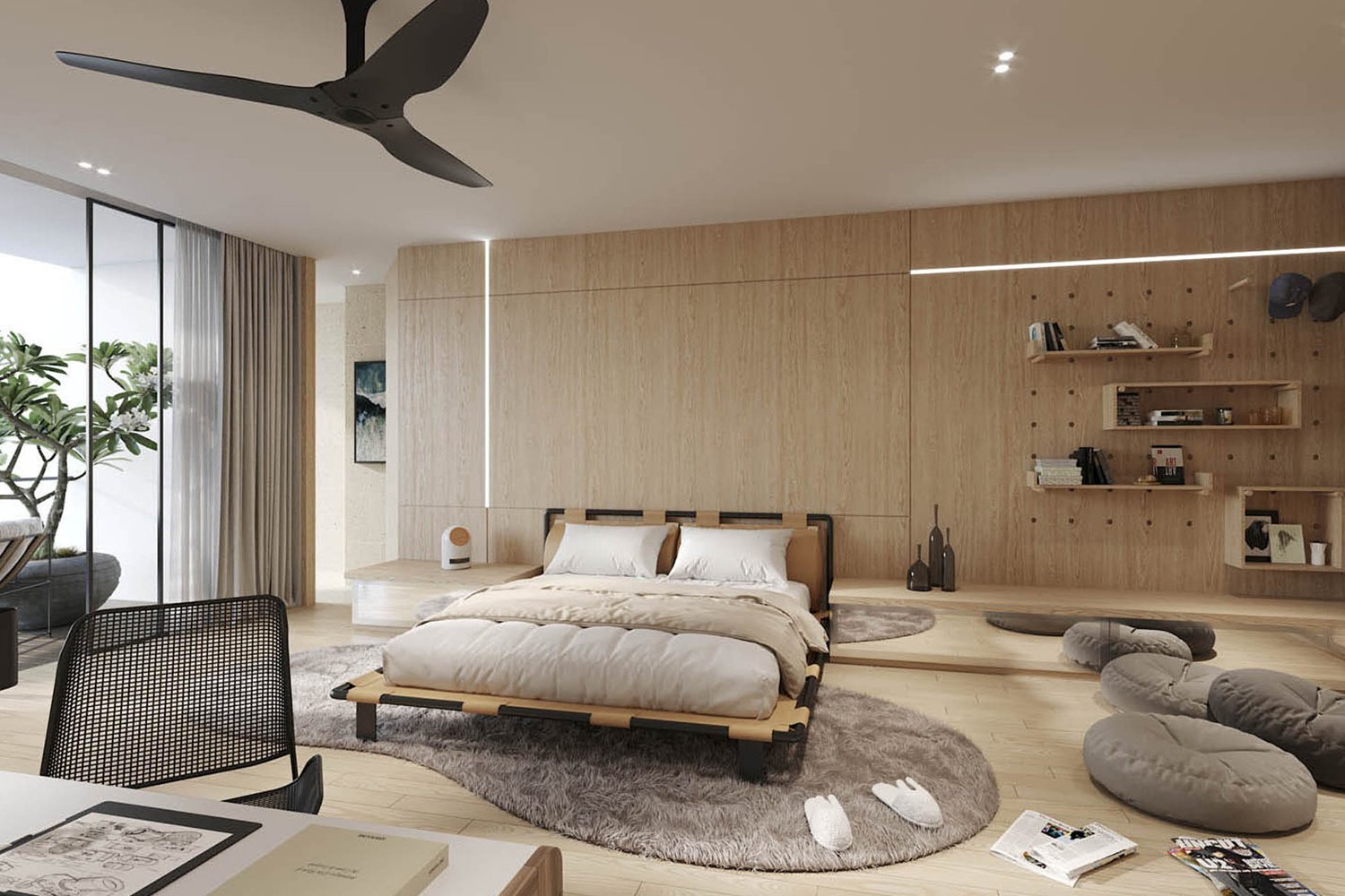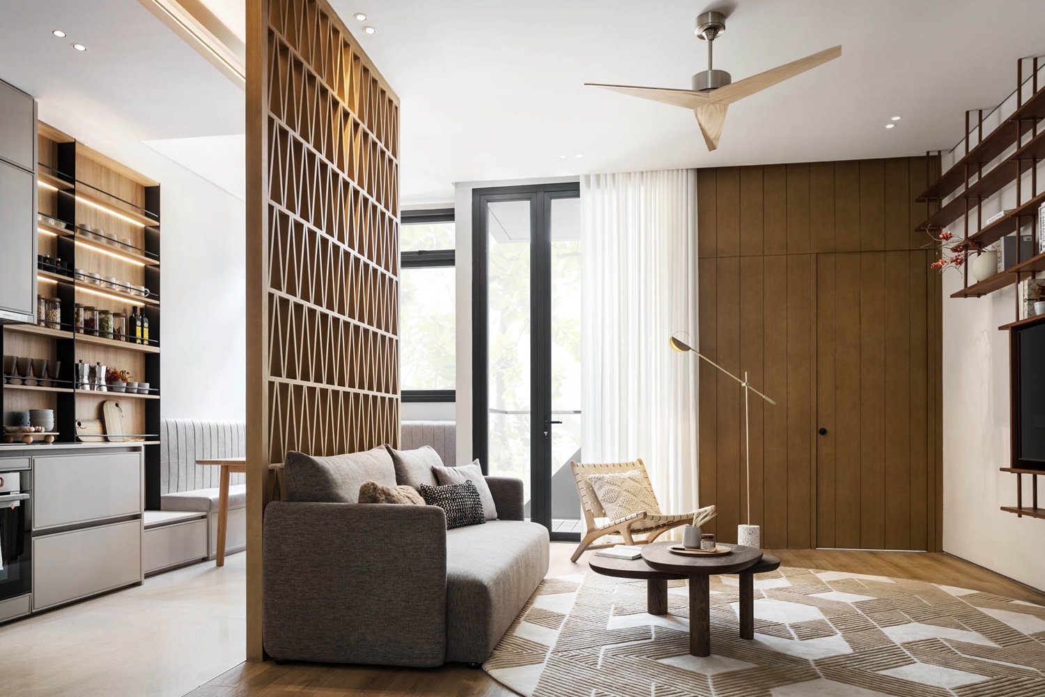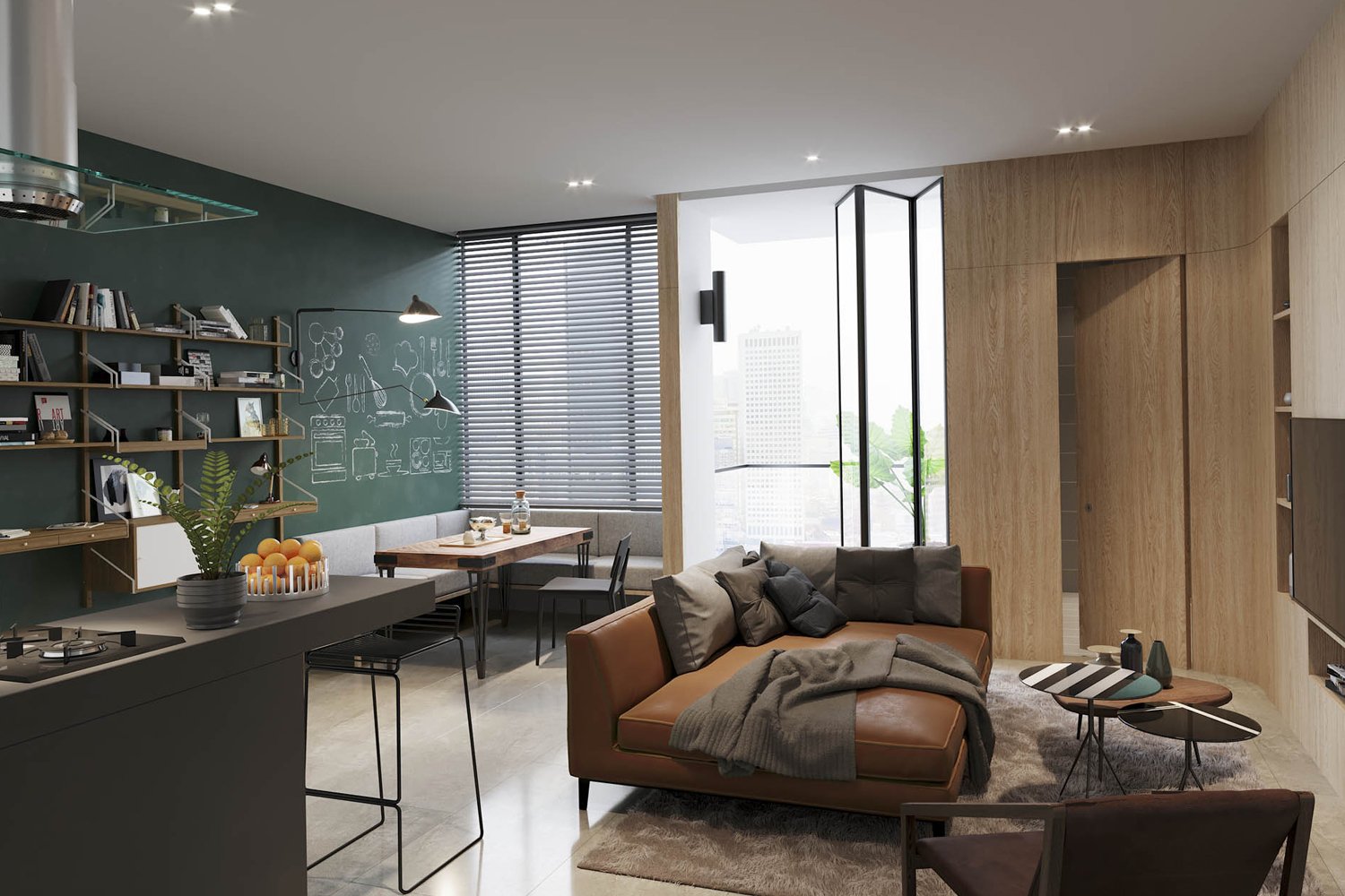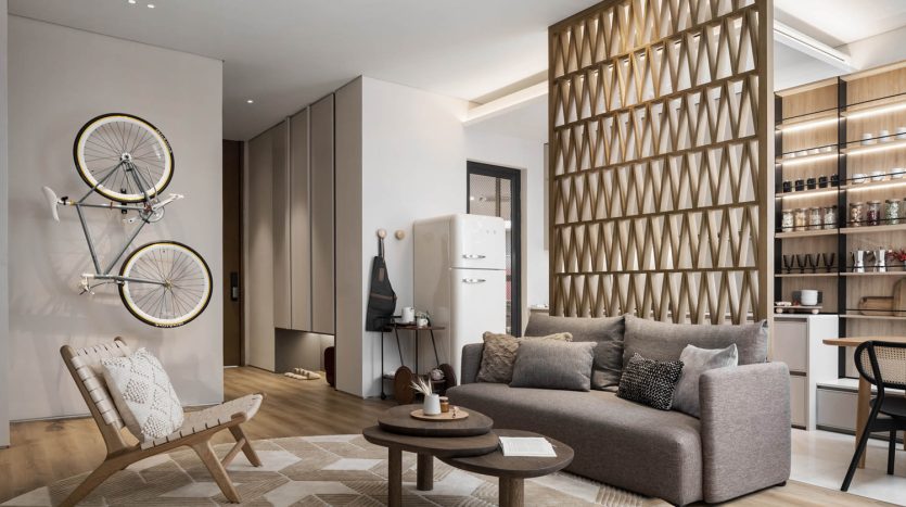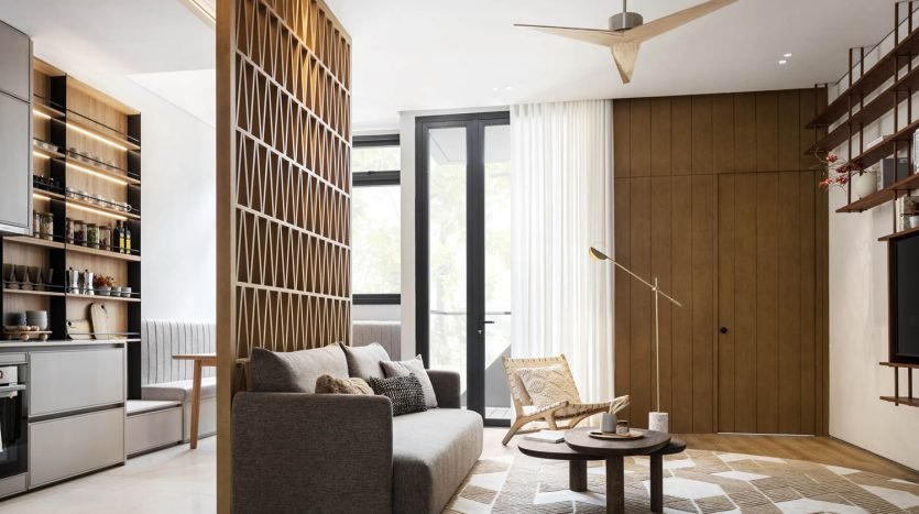 This two-bedroom apartment in Odom makes incredibly efficient use of every corner and space. With two balconies, a small open kitchen, a master bedroom with en suite bathroom and private balcony. A flexible breakout space adjacent to the master bedroom can be used as a study, children’s play area, extra storage, and more.