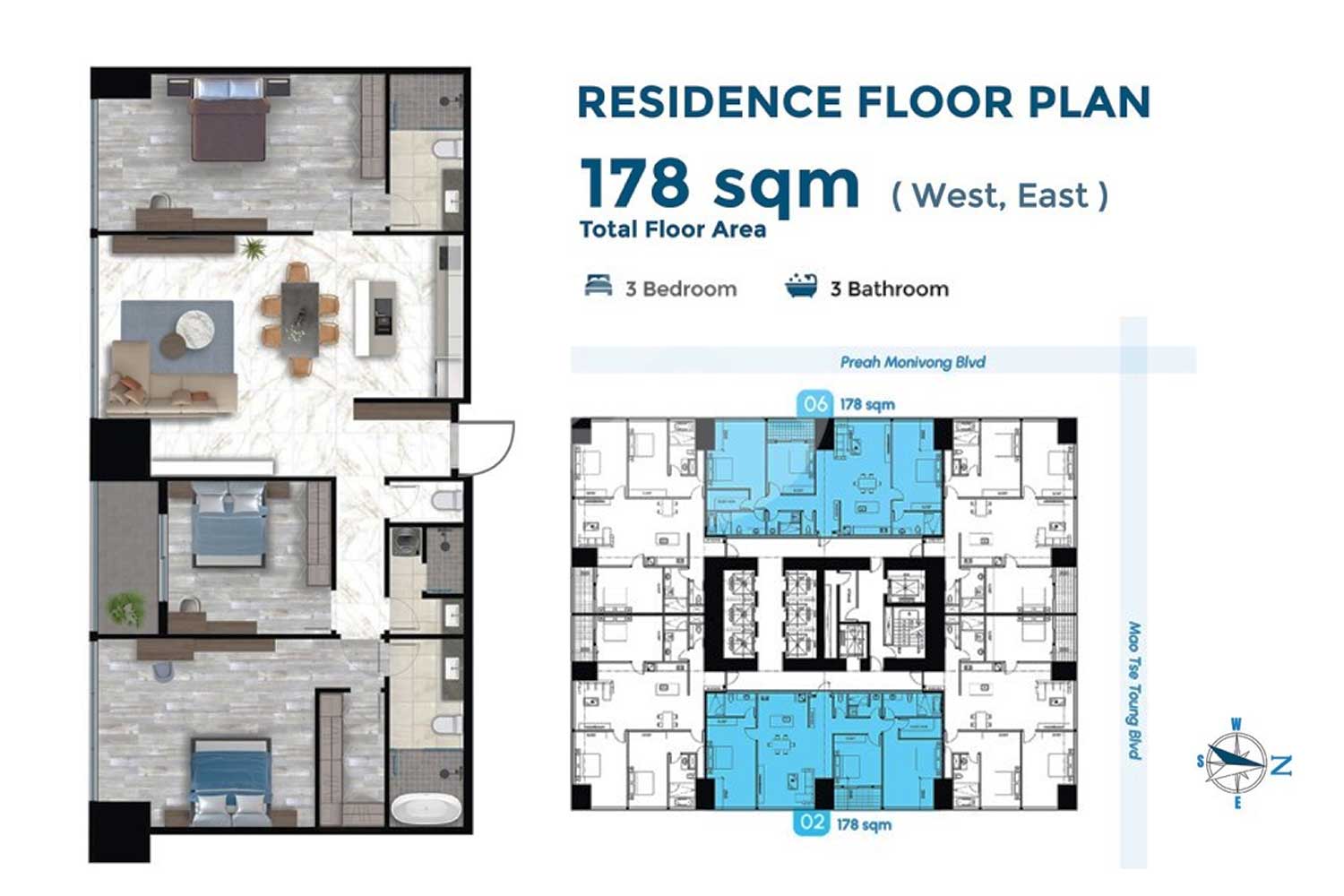 J-Tower 3 3-bedroom Type B units—each covering an area of 178 sq.m., designed to provide an unparalleled sense of privacy and exclusivity. Only two Type B units per level.